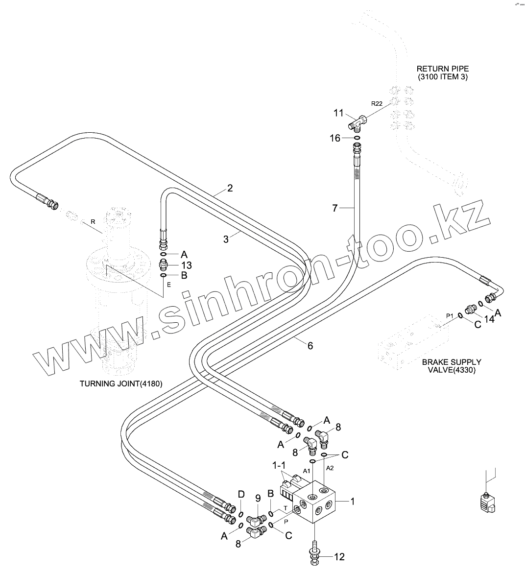 Каталог запасных частей к технике: Hyundai R140W-9S. PILOT HYD PIPING (4 OUTRIGGER)