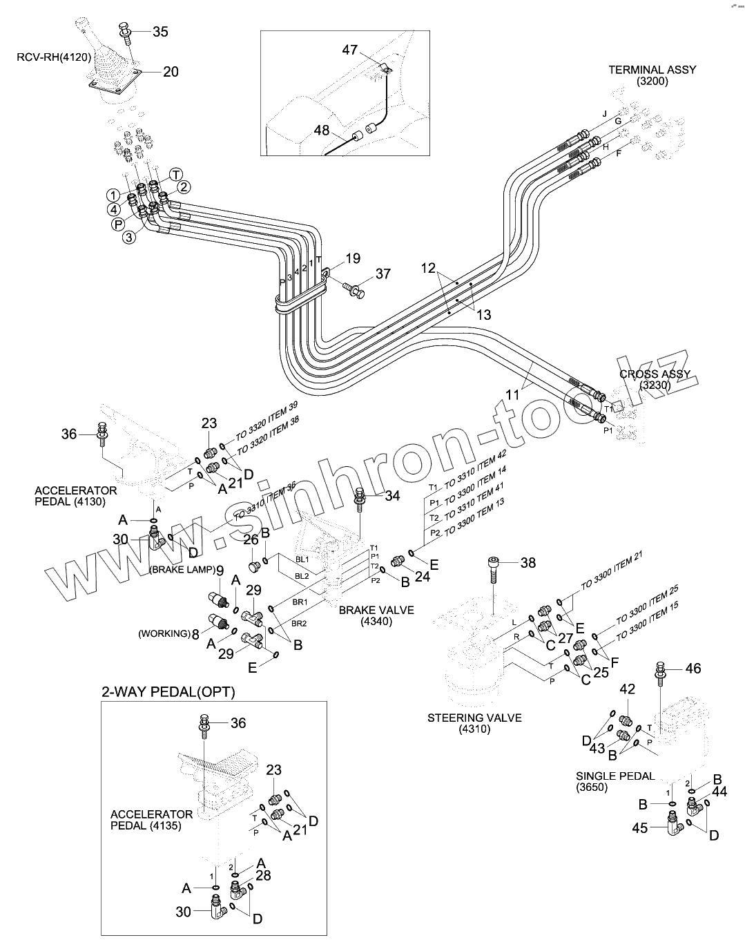 Каталог запасных частей к технике: Hyundai R140W-9S. PILOT HYD PIPING (BOTTOM 2)