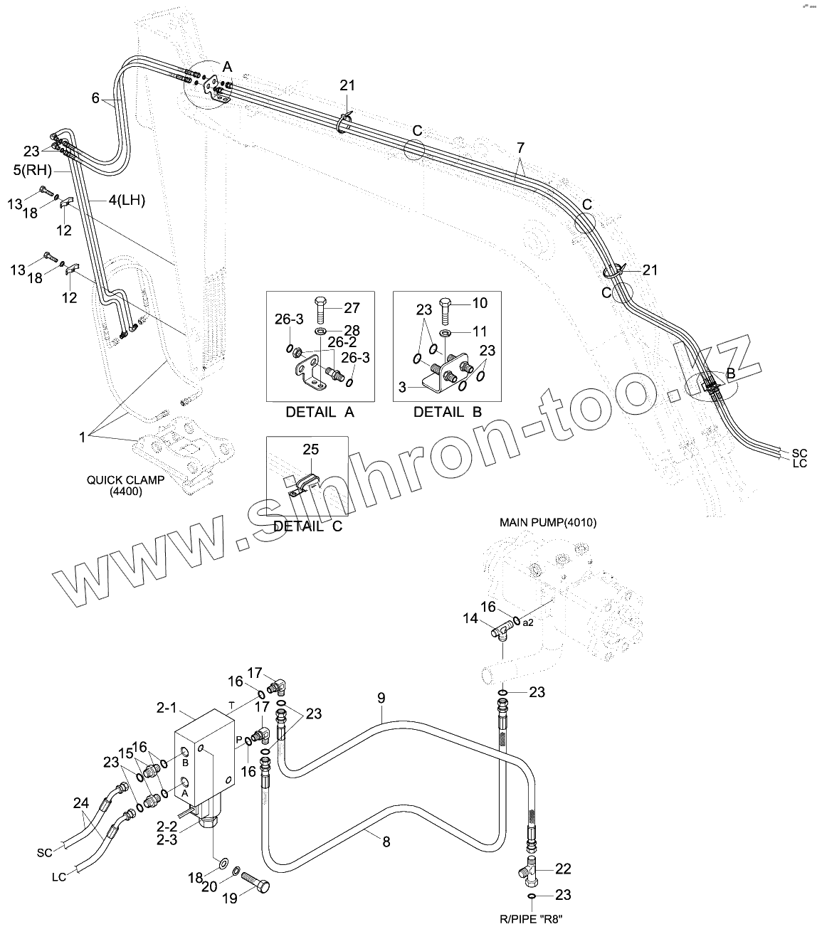 Каталог запасных частей к технике: Hyundai R140W-9S. QUICK CLAMP HYD PIPING