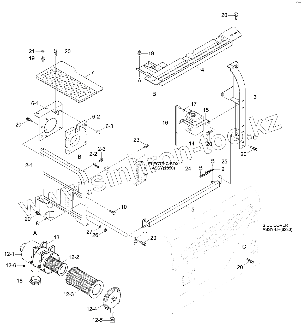Каталог запасных частей к технике: Hyundai R140W-9S. SIDE COWL ASSY (LH)