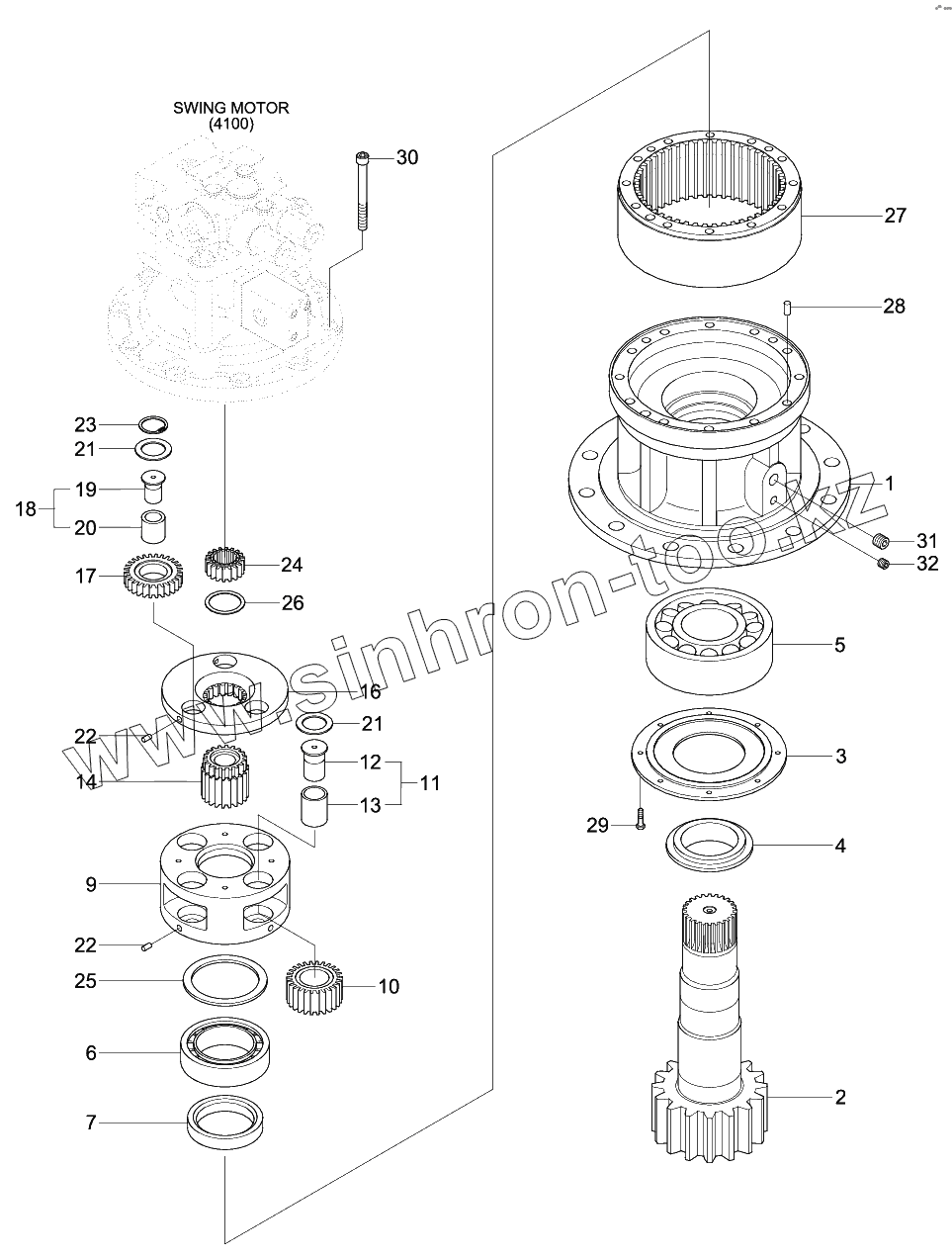 Каталог запасных частей к технике: Hyundai R140W-9S. SWING REDUCTION GEAR
