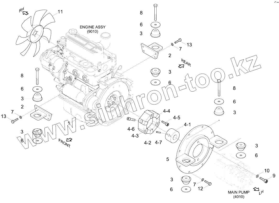 Каталог запасных частей к технике: Hyundai R16-9. ENGINE MOUNTING