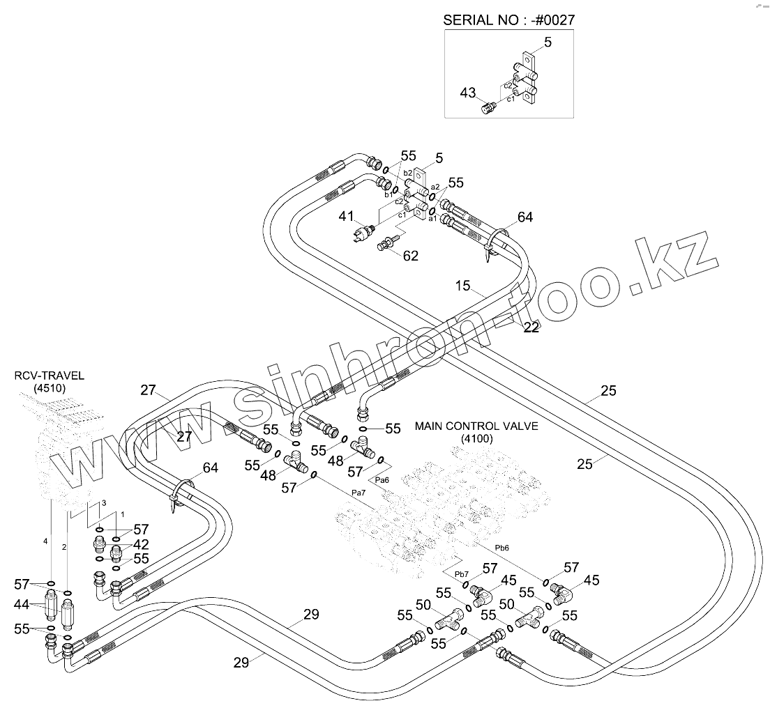 Каталог запасных частей к технике: Hyundai R16-9. PILOT HYD PIPING 4 (TRAVEL, ALARM)
