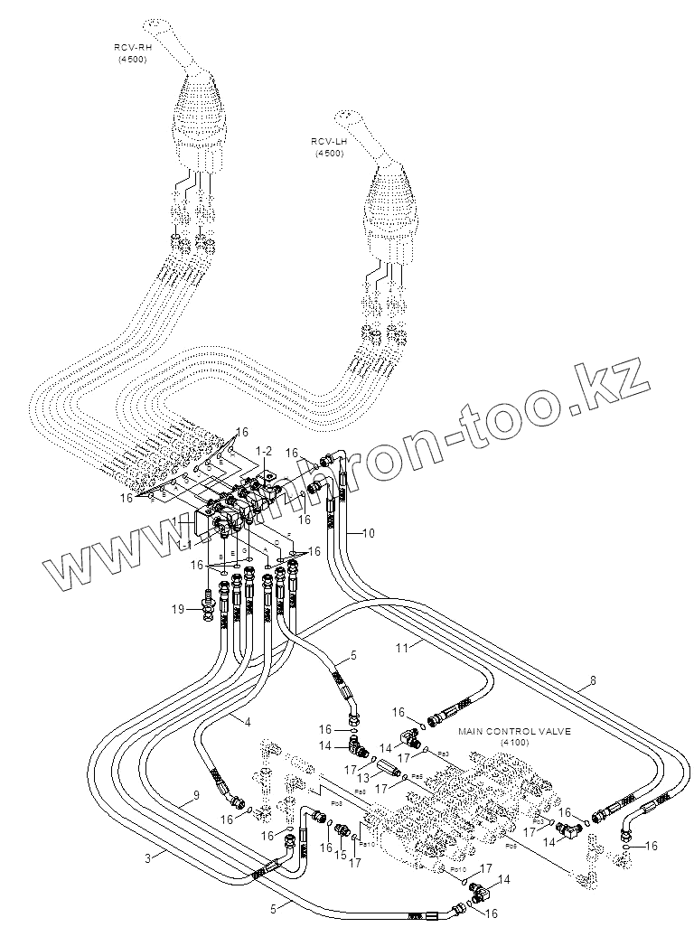 Каталог запасных частей к технике: Hyundai R16-9. RCV HYD PIPING 4