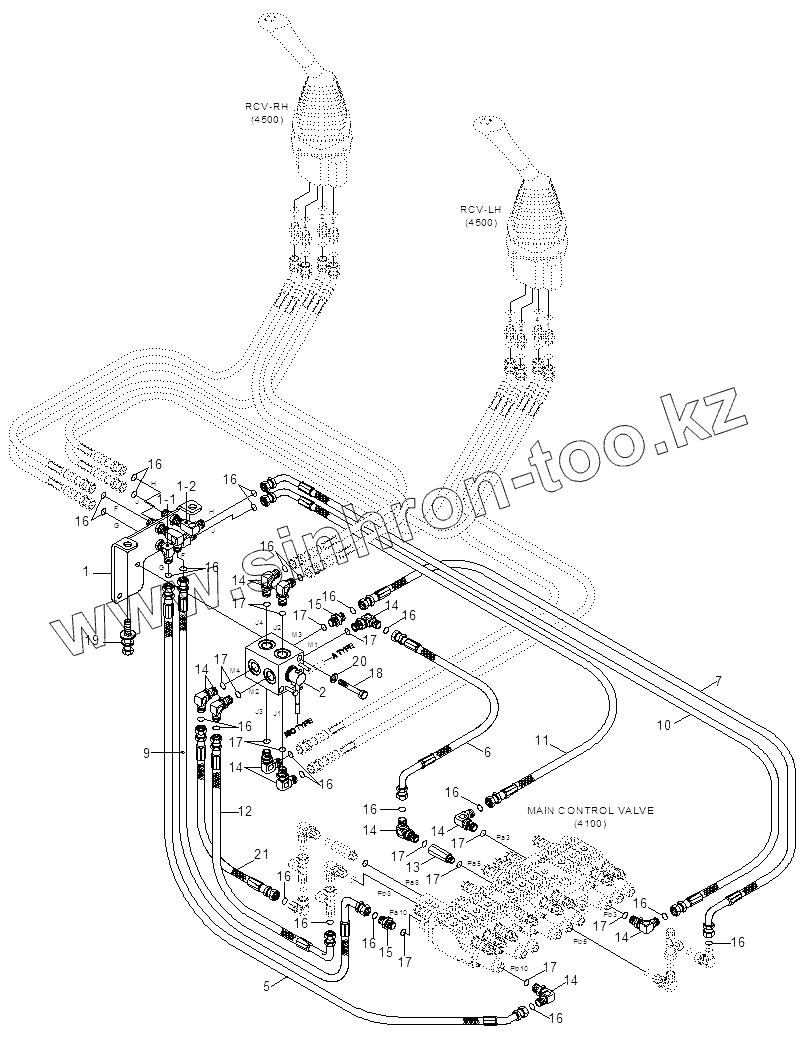 Каталог запасных частей к технике: Hyundai R16-9. RCV HYD PIPING 5 (PATTERN VALVE)