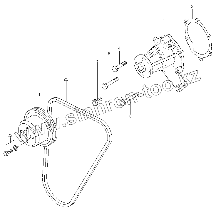 Каталог запасных частей к технике: Hyundai R16-9. WATER PUMP, FAN & DRIVE BELT