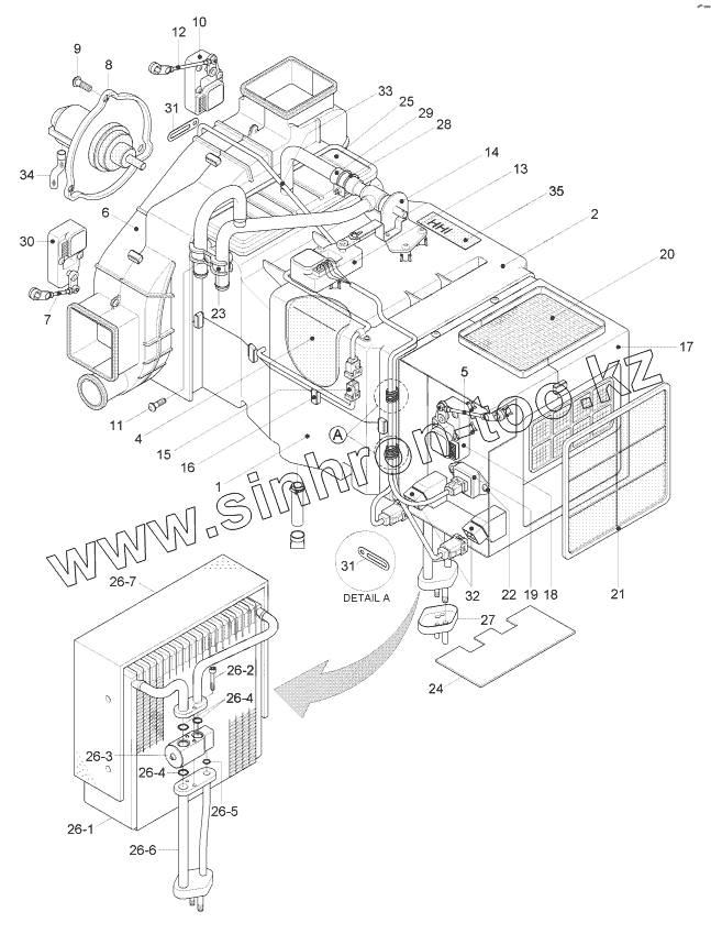 Каталог запасных частей к технике: Hyundai R170W-7. AIRCON & HEATER UNIT (-#0498)