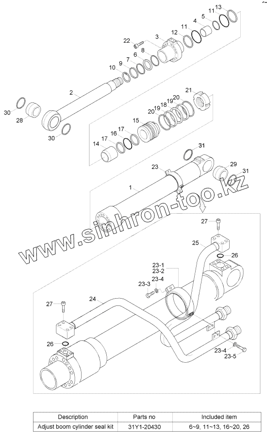 Каталог запасных частей к технике: Hyundai R170W-7. BOOM CYLINDER (ADJUST BOOM, #0022-)