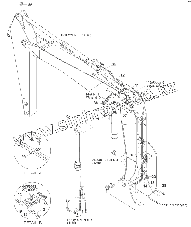Каталог запасных частей к технике: Hyundai R170W-7. BOOM GREASE LUB SYSTEM (ADJ/BOOM, #0022-)