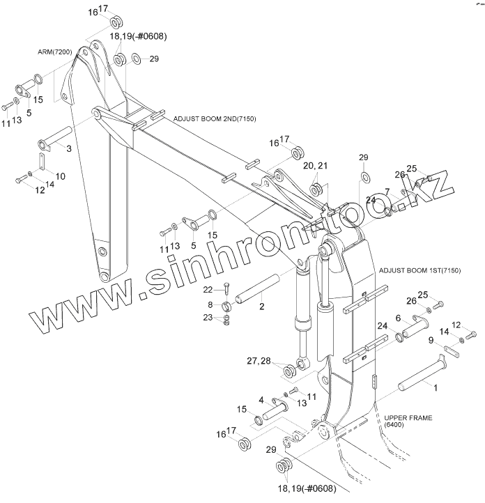 Каталог запасных частей к технике: Hyundai R170W-7. BOOM MOUNTING (ADJUST BOOM)