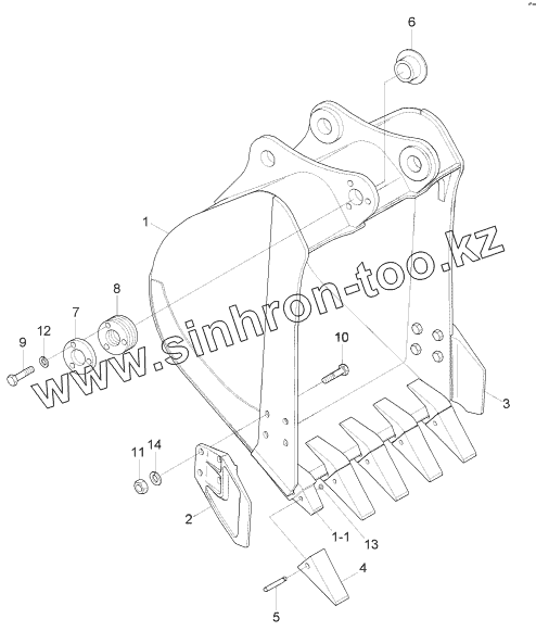 Каталог запасных частей к технике: Hyundai R170W-7. BUCKET (0.64M3 SAE HEAPED)