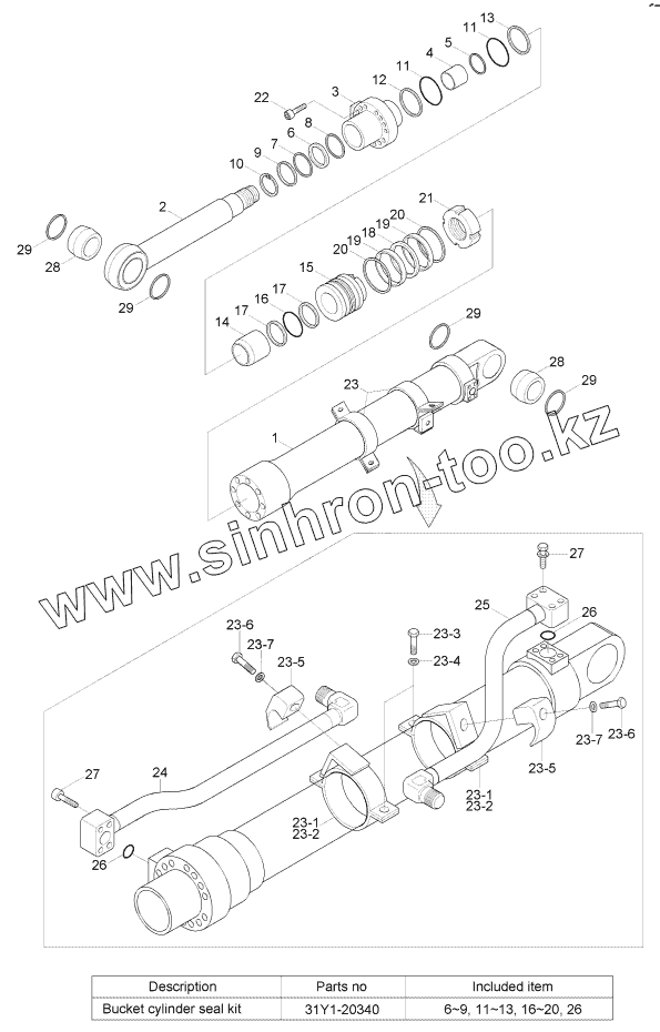 Каталог запасных частей к технике: Hyundai R170W-7. BUCKET CYLINDER