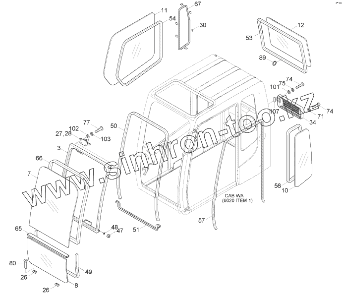 Каталог запасных частей к технике: Hyundai R170W-7. CAB ASSY (3/6, OPT, #1230-)