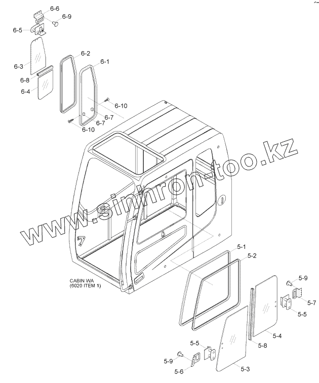 Каталог запасных частей к технике: Hyundai R170W-7. CAB ASSY (5/6, SASH ASSY)