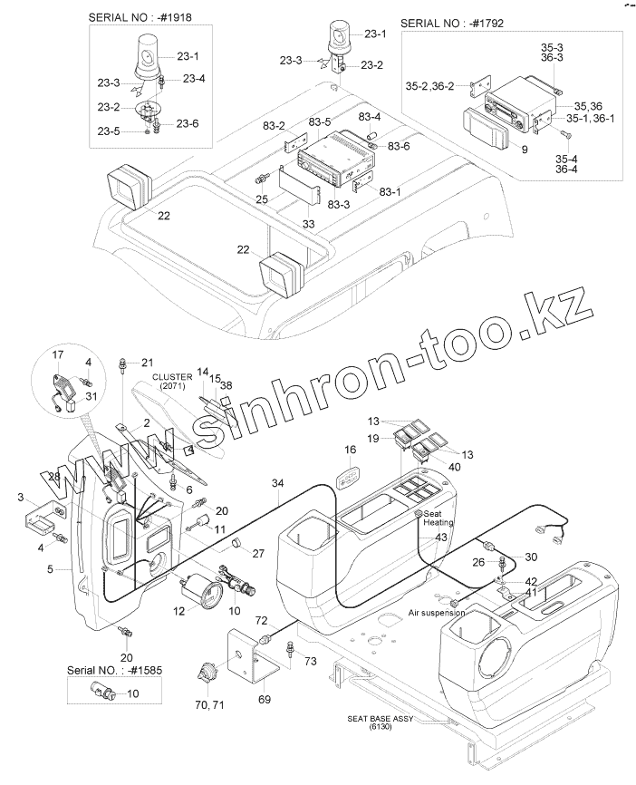 Каталог запасных частей к технике: Hyundai R170W-7. CAB ELECTRIC 2 (OPT, #1230-)