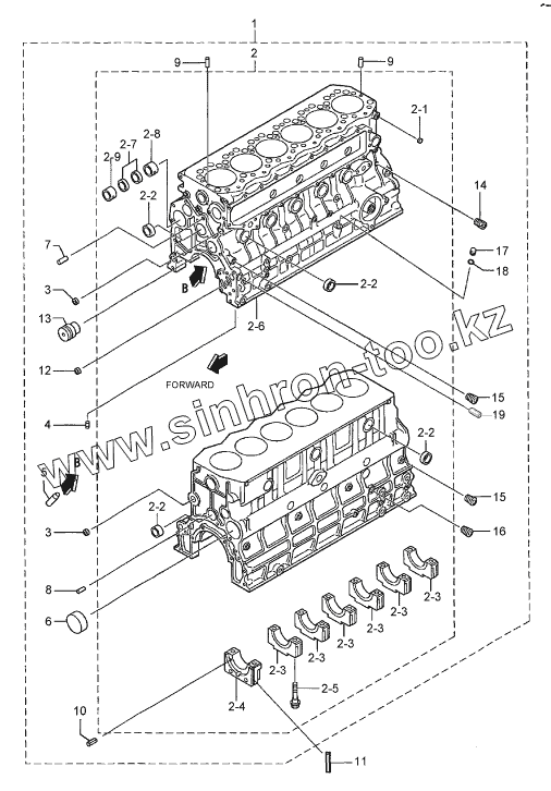Каталог запасных частей к технике: Hyundai R170W-7. CRANKCASE ASSY