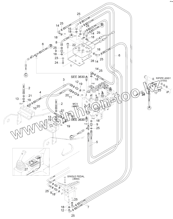 Каталог запасных частей к технике: Hyundai R170W-7. D/ACT MAIN PIPING KIT (ADJUST BOOM)