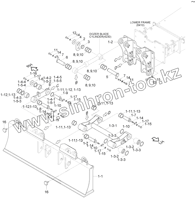 Каталог запасных частей к технике: Hyundai R170W-7. DOZER BLADE-FRONT