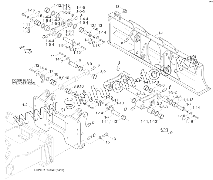 Каталог запасных частей к технике: Hyundai R170W-7. DOZER BLADE-REAR