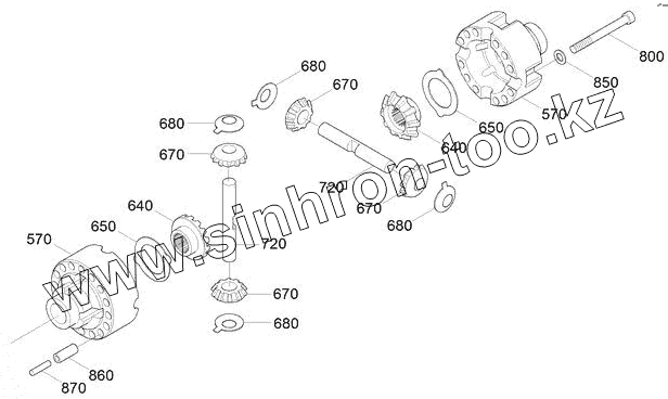 Каталог запасных частей к технике: Hyundai R170W-7. FRONT AXLE DIFFERENTIAL (#0979-)
