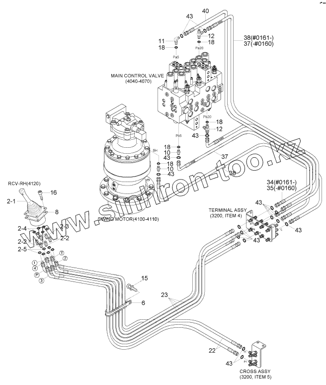 Каталог запасных частей к технике: Hyundai R170W-7. PILOT HYD PIPING (CONTROL 2, -#0429)