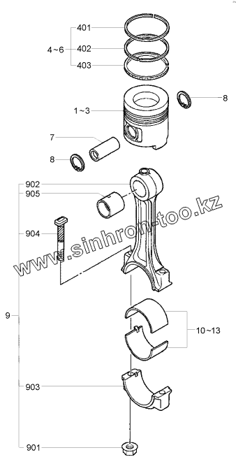 Каталог запасных частей к технике: Hyundai R170W-7. PISTON & CONNECTING ROD