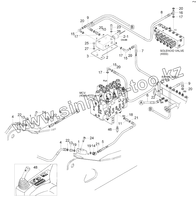 Каталог запасных частей к технике: Hyundai R170W-7. SINGLE ACTING MAIN PIPING KIT