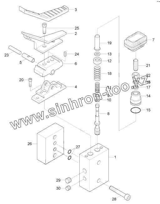 Каталог запасных частей к технике: Hyundai R170W-7. SINGLE PEDAL (DOUBLE ACTING)