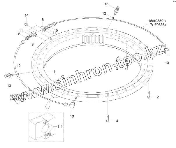 Каталог запасных частей к технике: Hyundai R170W-7. SWING RING GREASE LUB SYSTEM