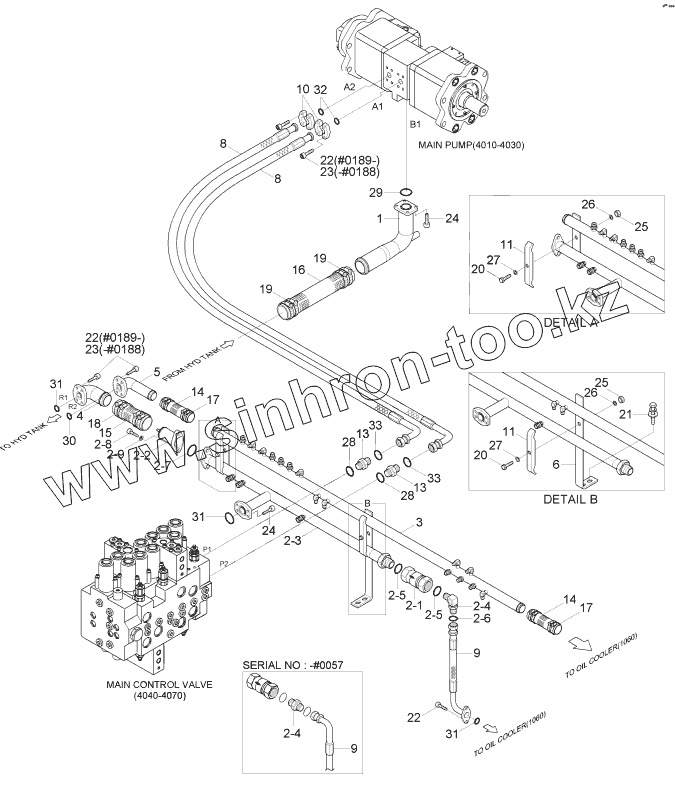 Каталог запасных частей к технике: Hyundai R170W-7. UPPER HYD PIPING (BASE)