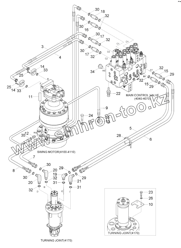 Каталог запасных частей к технике: Hyundai R170W-7. UPPER HYDRAULIC PIPING (TRAVEL)
