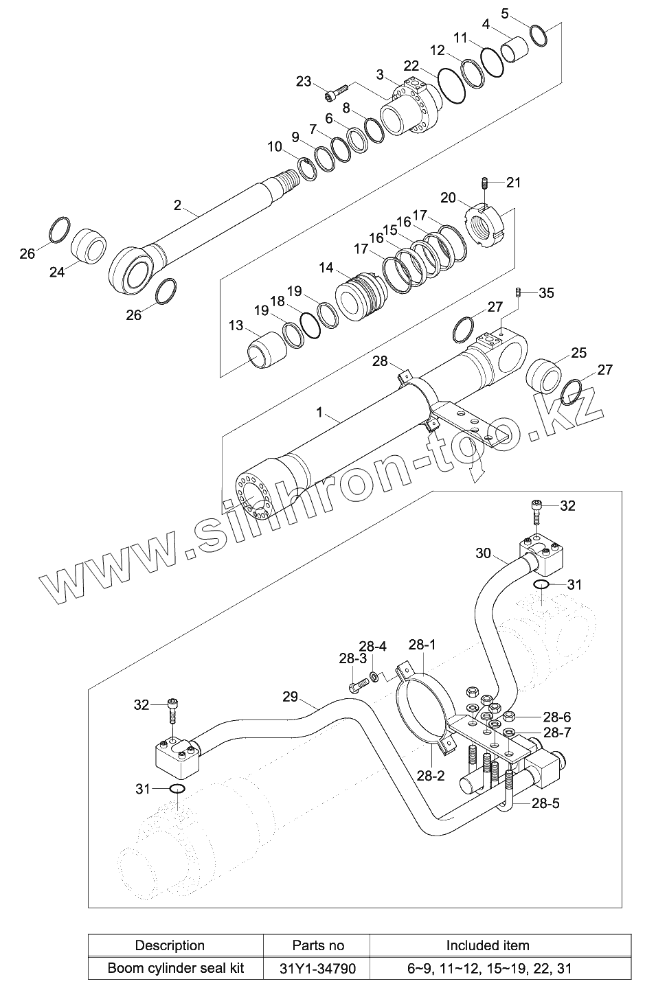 Каталог запасных частей к технике: Hyundai R170W-9. BOOM CYLINDER