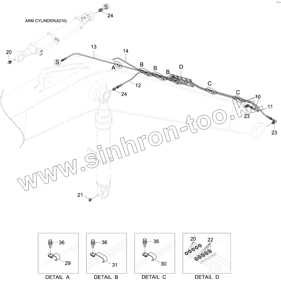 Каталог запасных частей к технике: Hyundai R170W-9. BOOM GREASE LUB SYSTEM (5.1M, STD)