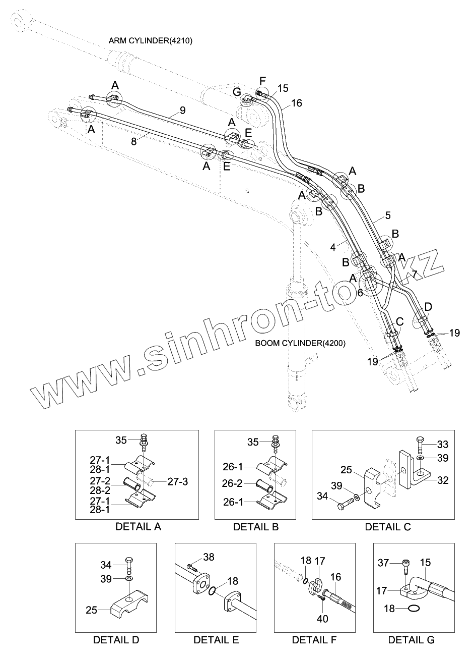 Каталог запасных частей к технике: Hyundai R170W-9. BOOM HYD PIPING (5.1M, STD)