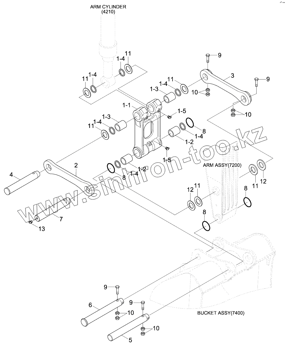 Каталог запасных частей к технике: Hyundai R170W-9. BUCKET CONTROL GROUP