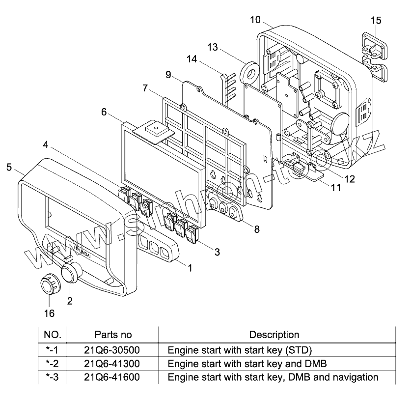Каталог запасных частей к технике: Hyundai R170W-9. CLUSTER (OPTION)