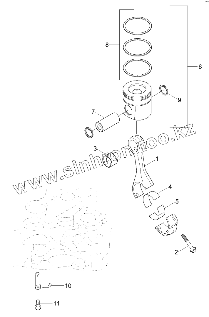 Каталог запасных частей к технике: Hyundai R170W-9. CONNECTING ROD & PISTON