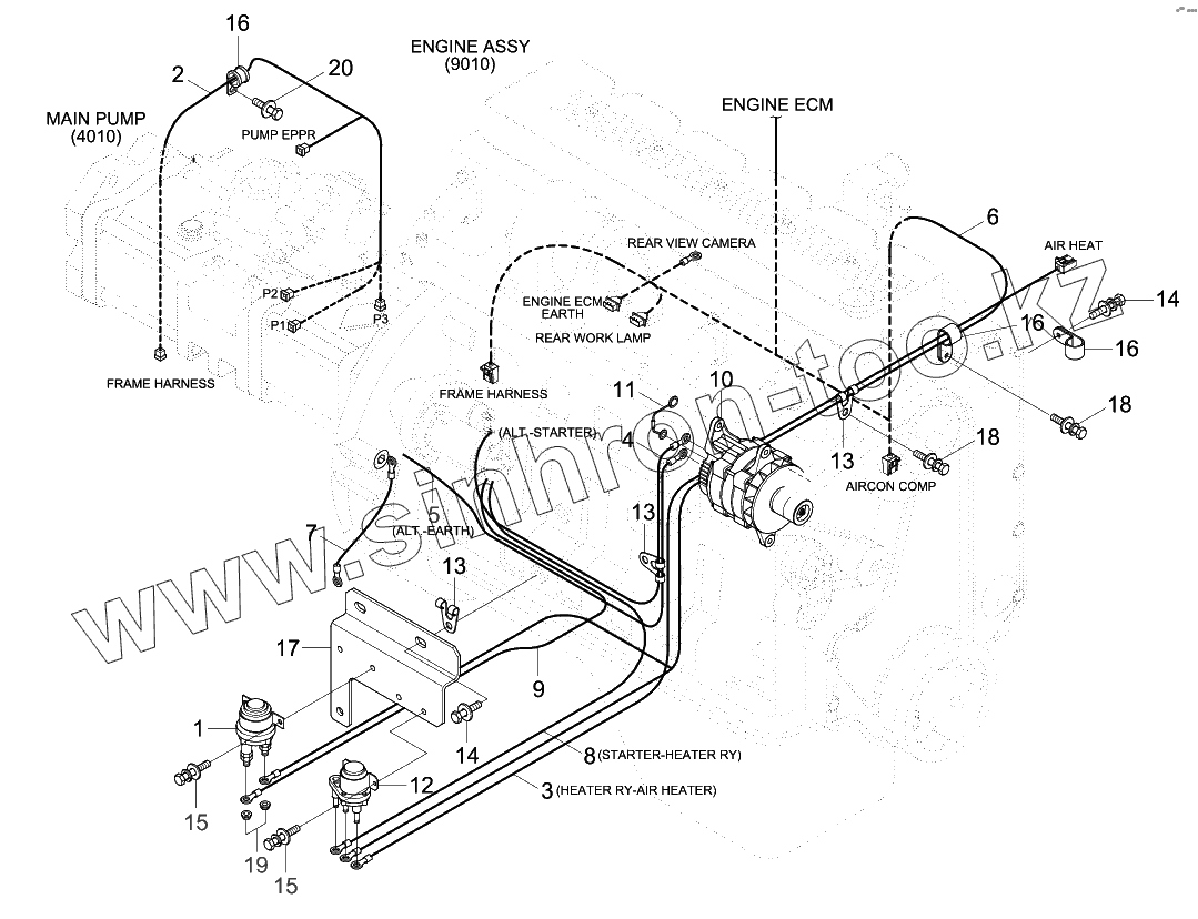 Каталог запасных частей к технике: Hyundai R170W-9. ENGINE ELECTRIC