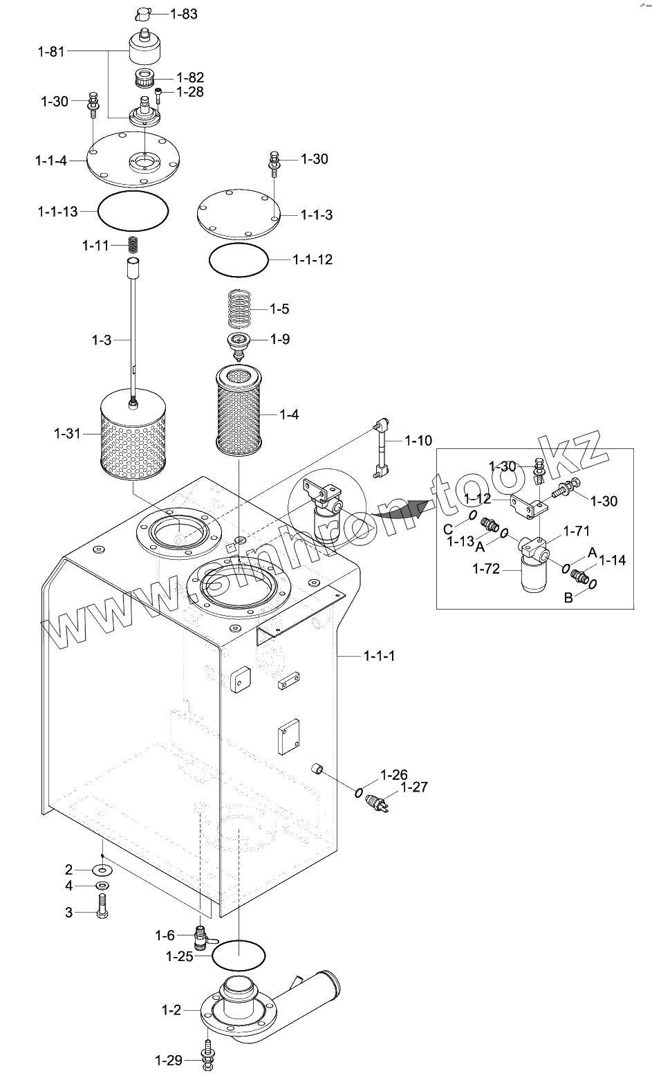 Каталог запасных частей к технике: Hyundai R170W-9. HYDRAULIC TANK