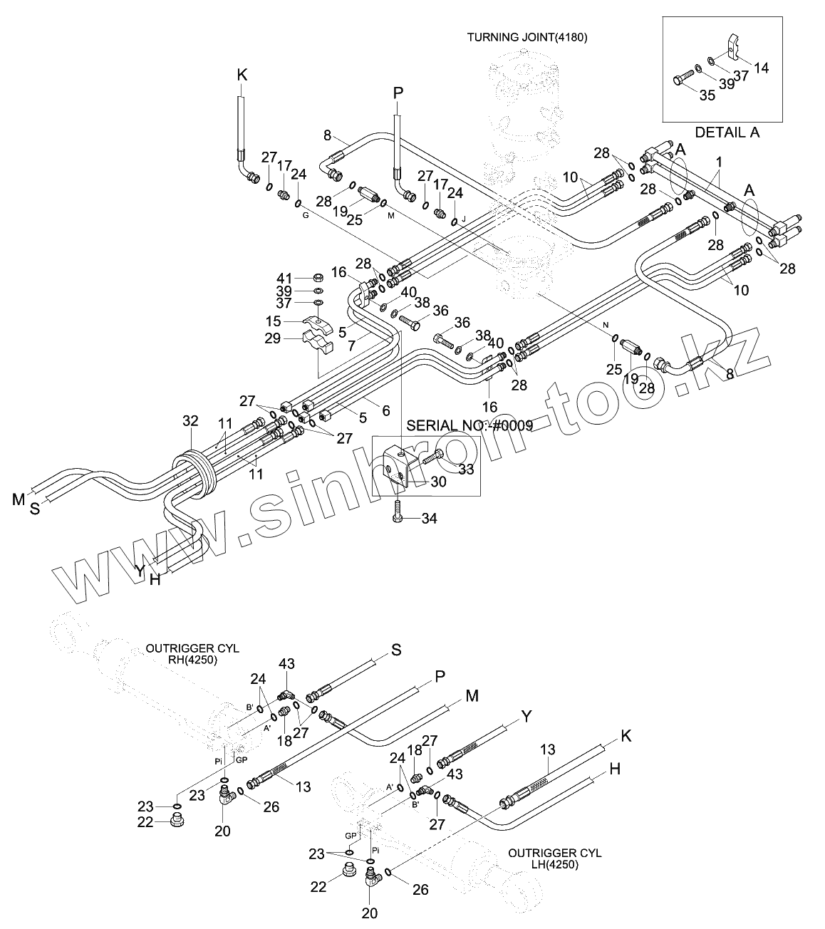 Каталог запасных частей к технике: Hyundai R170W-9. LOWER HYD PIPING 2 (4-OUTRIGGER, -#0089)