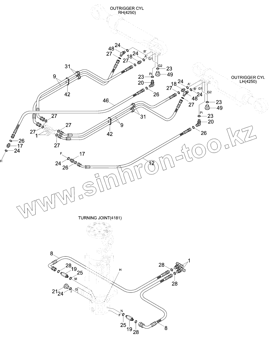 Каталог запасных частей к технике: Hyundai R170W-9. LOWER HYD PIPING (2-OUTRIGGER, #0090-)