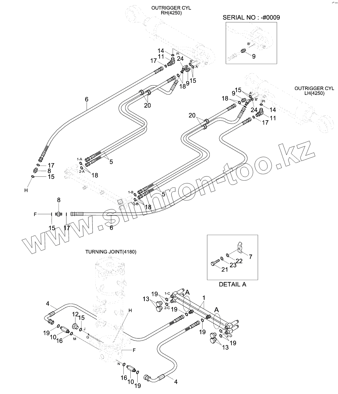 Каталог запасных частей к технике: Hyundai R170W-9. LOWER HYD PIPING (2-OUTRIGGER, -#0089)