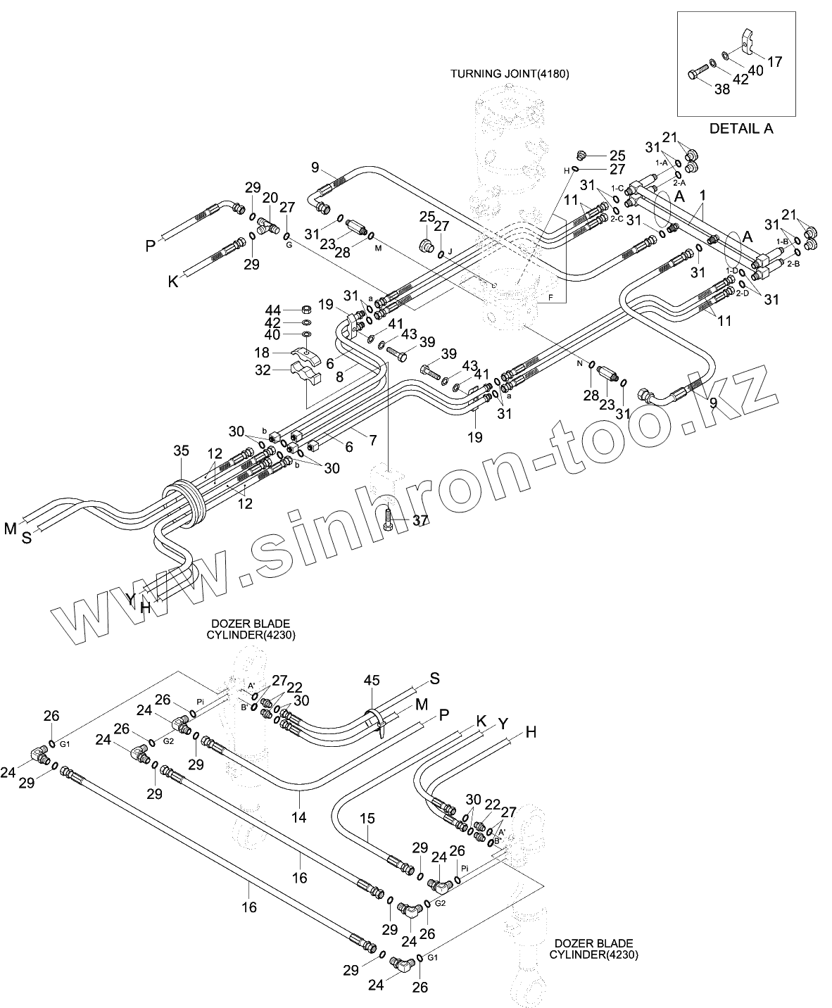 Каталог запасных частей к технике: Hyundai R170W-9. LOWER HYD PIPING (F/BLADE, #0010-#0089)