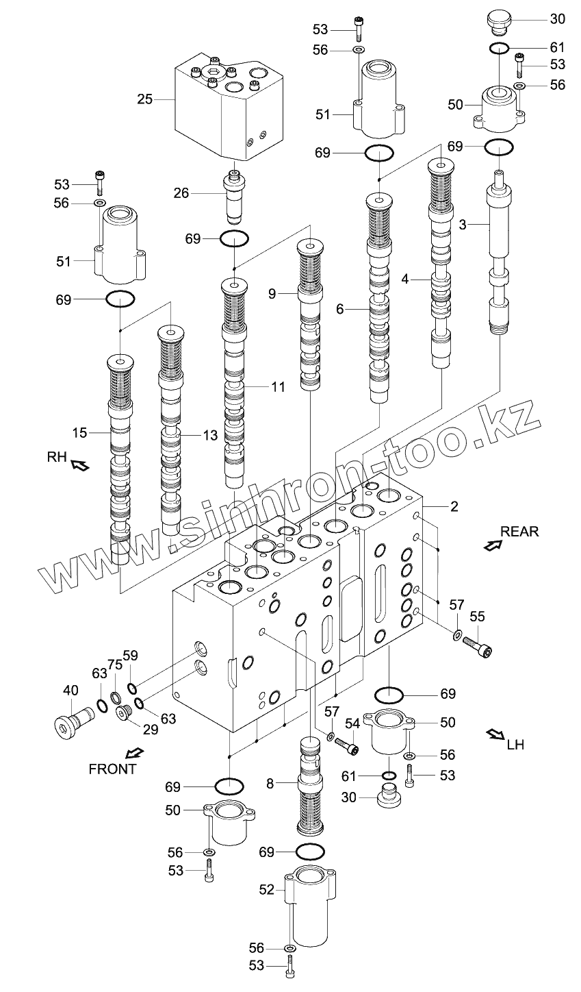 Каталог запасных частей к технике: Hyundai R170W-9. MAIN CONTROL VALVE (3/4)