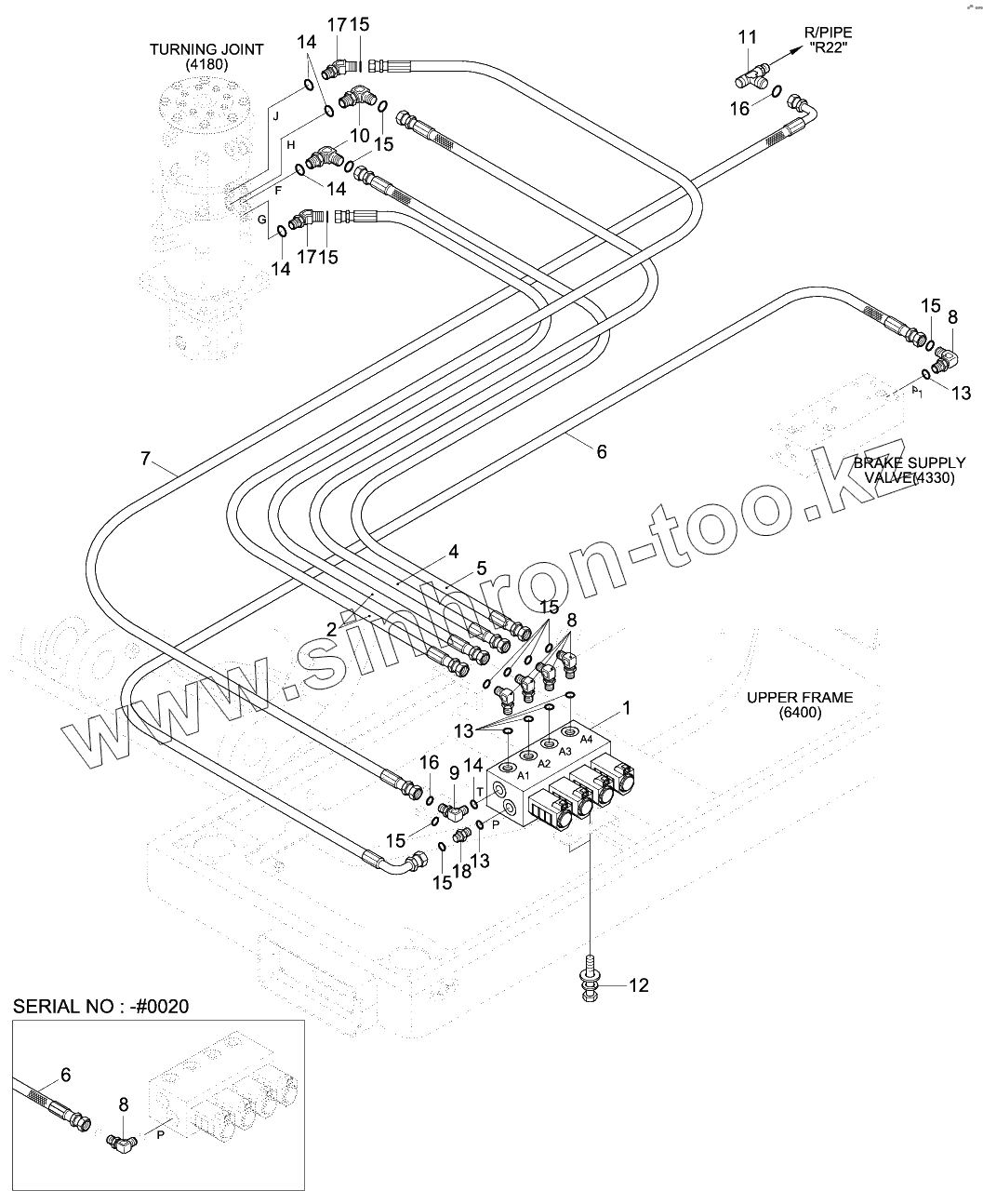Каталог запасных частей к технике: Hyundai R170W-9. PILOT HYD PIPING (4 OUTRIGGER)