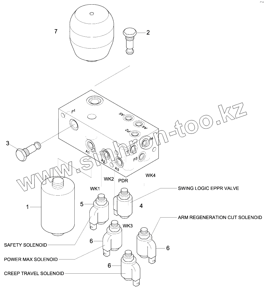 Каталог запасных частей к технике: Hyundai R170W-9. SOLENOID VALVE (-#0089)