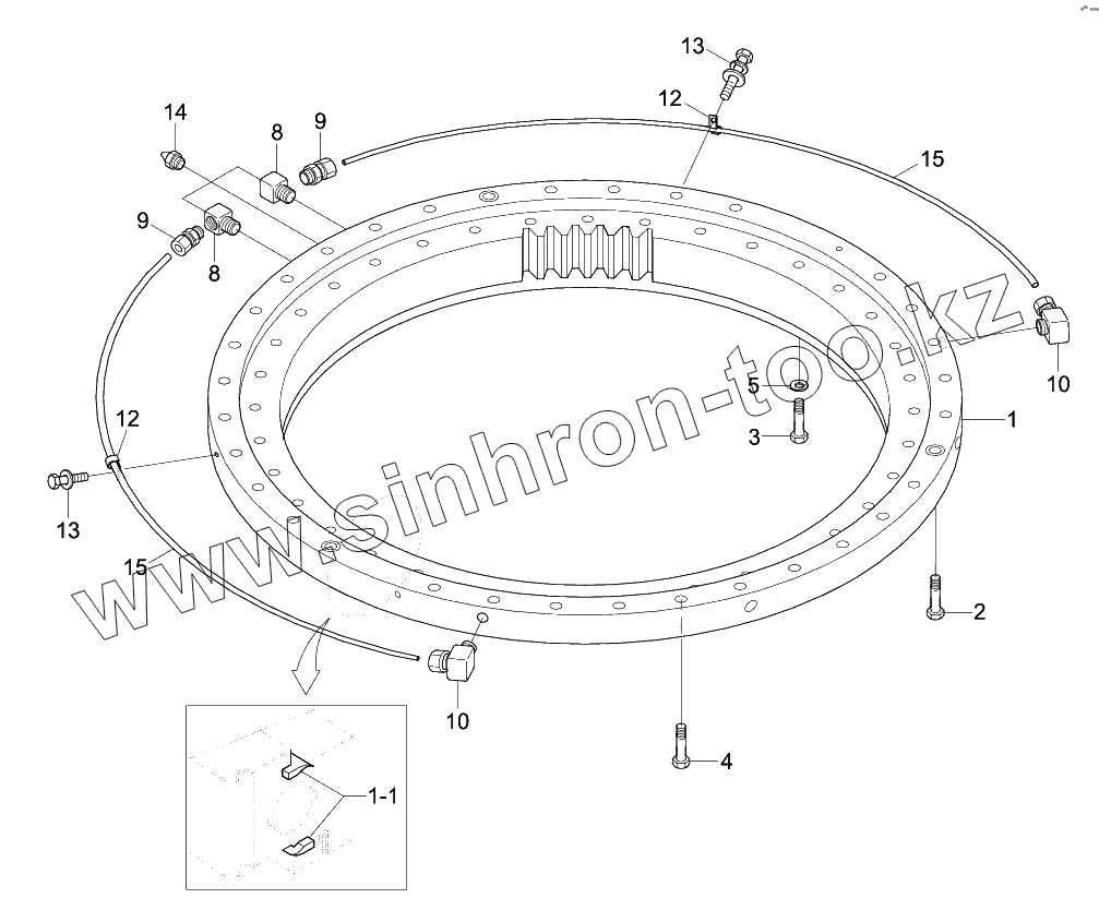 Каталог запасных частей к технике: Hyundai R170W-9. SWING RING GREASE LUB SYSTEM