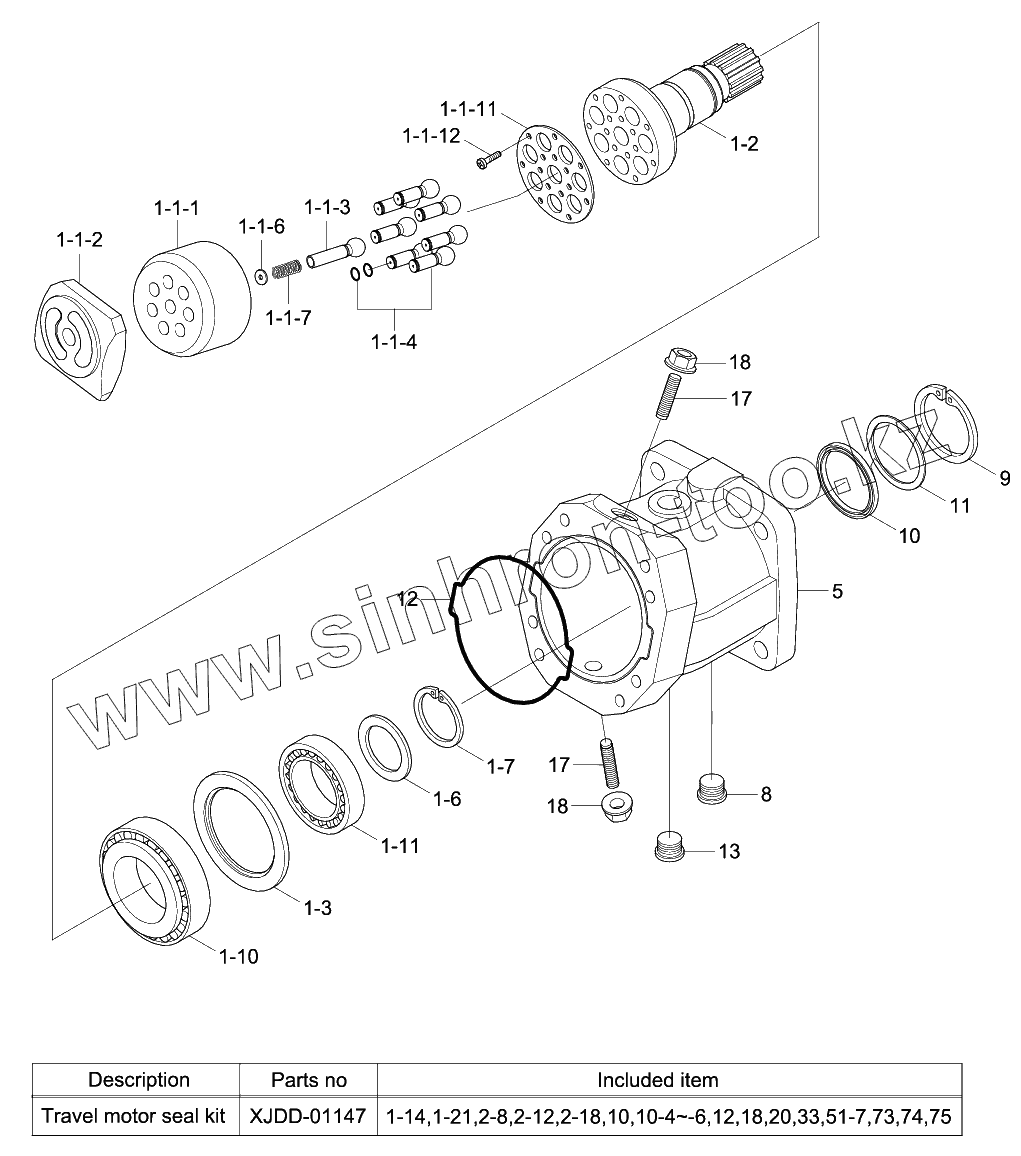 Каталог запасных частей к технике: Hyundai R170W-9. TRAVEL MOTOR (1/2)