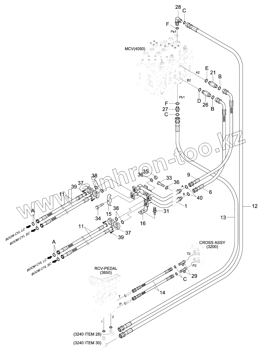 UPPER HYD PIPING 1 (ADJUST BOOM, #0005-)