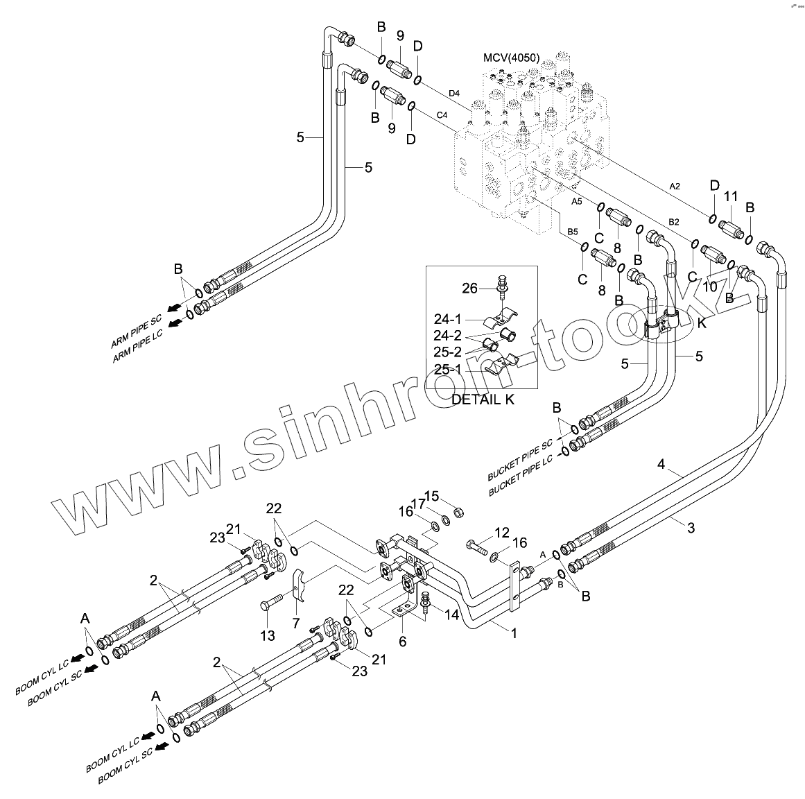 Каталог запасных частей к технике: Hyundai R170W-9. UPPER HYD PIPING (ATTACH)
